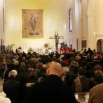 Ha scelto di concludere a Cisterna il Vescovo Mons. Mariano Crociata la serie di visite nelle comunità parrocchiali della Forania di Latina-Terracina-Sezze-Priverno. Giunto domenica alle 17:30 sul sagrato della Chiesa di Santa Maria Assunta in Cielo, S.E. il Vescovo è stato accolto dai parroci, dai sindaci, dalle autorità, dai rappresentanti delle forze dell’ordine, dalle associazioni di volontariato e soprattutto da tanti fedeli di Cisterna, Cori, Norma, Rocca Massima. In una chiesa gremita, alle 18 è iniziata la Santa Messa presieduta dal Vescovo e concelebrata dai sacerdoti della Forania. “La comunità di Cisterna, oltre che di Cori, Norma e Rocca Massima – ha detto il sindaco Antonello Merolla – domenica ha vissuto un altro rilevante momento della vita parrocchiale accogliendo per la prima volta e in forma ufficiale il nuovo Vescovo, S.E. Monsignor Mariano Crociata. Ringrazio i colleghi sindaci per la solenne partecipazione come pure tutte le autorità presenti, le associazioni ed i tanti cittadini. E’ stato un momento importante soprattutto per instaurare un rapporto di collaborazione con il nuovo Vescovo. Dopo la cerimonia ufficiale, infatti, si è tenuto un incontro riservato tra i sindaci ed il Vescovo durante il quale c’è stata l’occasione per un primo veloce confronto. Il Vescovo ha voluto conoscere le problematiche del nostro territorio ad iniziare dalla situazione occupazionale e immediatamente dopo le attività che ogni comune ha messo in campo nell’ambito del welfare. Temi, dunque, di grande attualità e sui quali sono certo potremo fondare un rapporto di reciproca e proficua collaborazione”.
