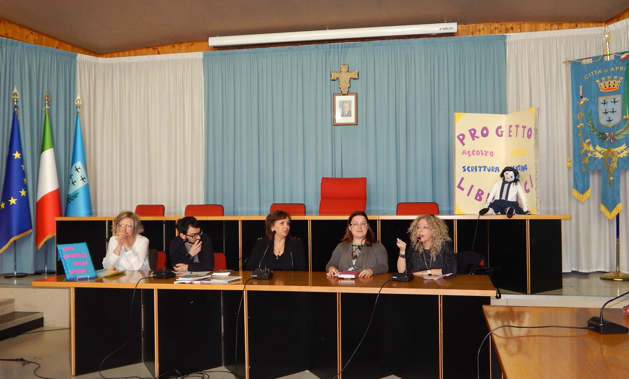 Ha avuto luogo mercoledì sera, presso l’Aula Consiliare del Comune di Aprilia, l’incontro con la scrittrice Patrizia Rinaldi, vincitrice lo scorso febbraio del Premio “Leggimi Forte”, sezione letteratura per bambini. L’incontro ha avuto luogo nell’ambito del progetto di lettura “Librandoci” promosso dall’istituto comprensivo Zona Leda. All’iniziativa ha preso parte, in rappresentanza dell’Amministrazione Comunale, l’Assessore alla Pubblica Istruzione Francesca Barbaliscia. Sul tavolo degli ospiti, il dirigente scolastico professoressa Fabiola Pagnanelli, l’attore Emiliano Russo, gli insegnanti coautori del progetto Sabrina Domini (per la scuola elementare di Campo di Carne) e Carlo Baldi (scuola media Zona Leda). La particolarità dell’iniziativa promossa dall’istituto è infatti proprio la concezione verticale del progetto di lettura, che coinvolge l’intero ciclo scolastico dall’Infanzia alla terza media. L’intrattenimento musicale è stato curato dal professor Carlo Gazzetti.