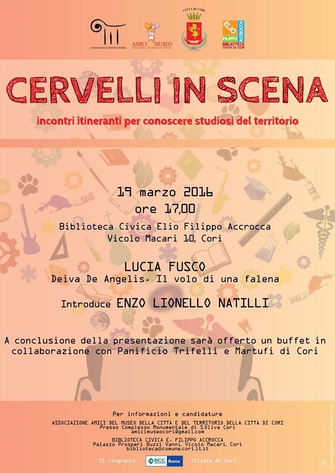 Mondoreale > Blog > Cultura & Eventi > Cori, “Cervelli in Scena”: Lucia Fusco presenta ‘Deìva De Angelis. Il volo di una falena’ > CERVELLI IN SCENA III – LOCANDINA