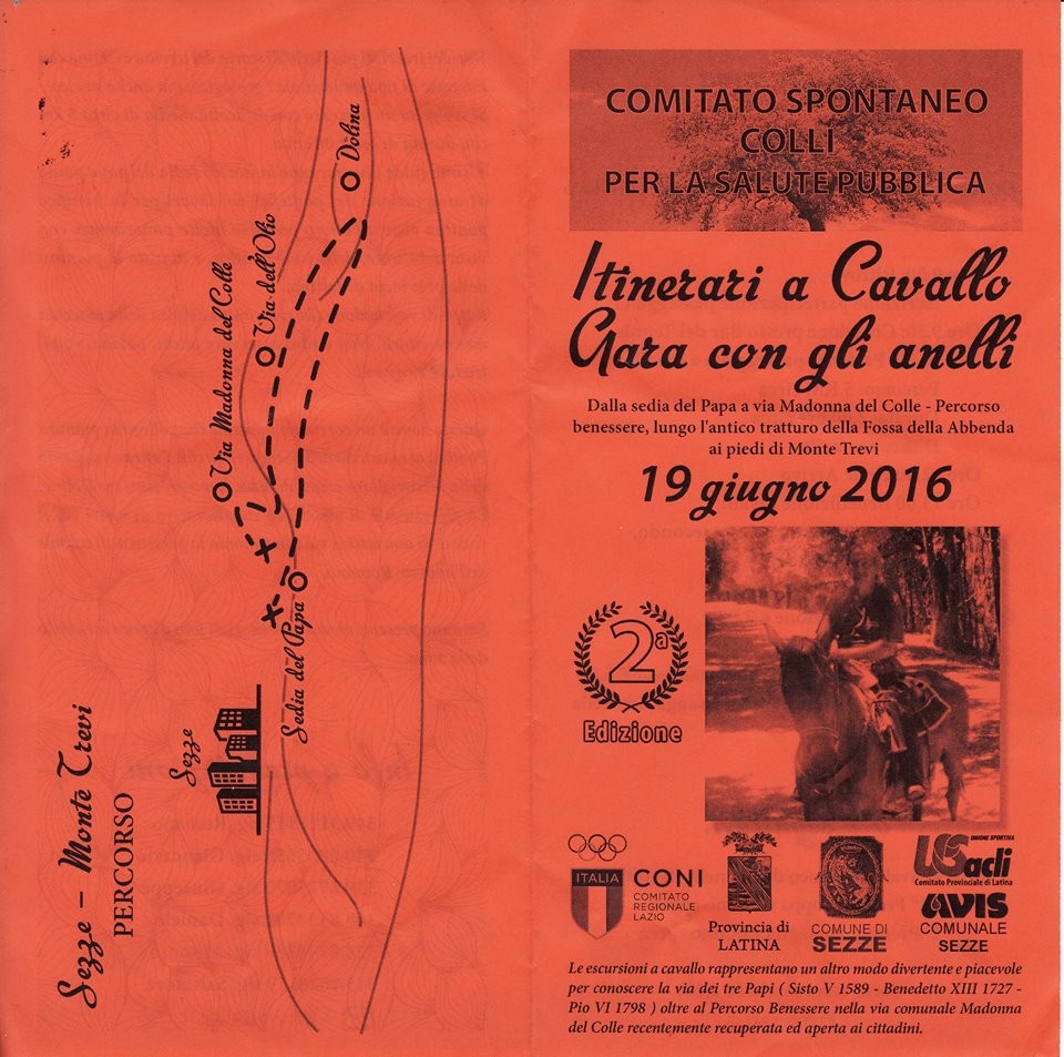 E’ tutto pronto a Sezze per la seconda tappa delle Colliadi 2016, manifestazione organizzata dall’associazione Polisportiva Colli, che ha preso ufficialmente il via domenica 29 maggio con la gara del triathlon sprint vinta da Nicola Boumis. Come nell’esordio, anche la seconda tappa di domenica prossima vanterà un ricco programma e prevederà una giornata dedicata alle passeggiate a cavallo e alla gara degli anelli, con raduno e partenza intorno alle 9 del mattino nell’area dell’Anfiteatro. Il ricavato della manifestazione organizzata dalla Polisportiva Colli, recuperate le spese, come sempre sarà impiegato per la realizzazione di opere pubbliche o donato a bisognosi della contrada scelti da apposita commissione.