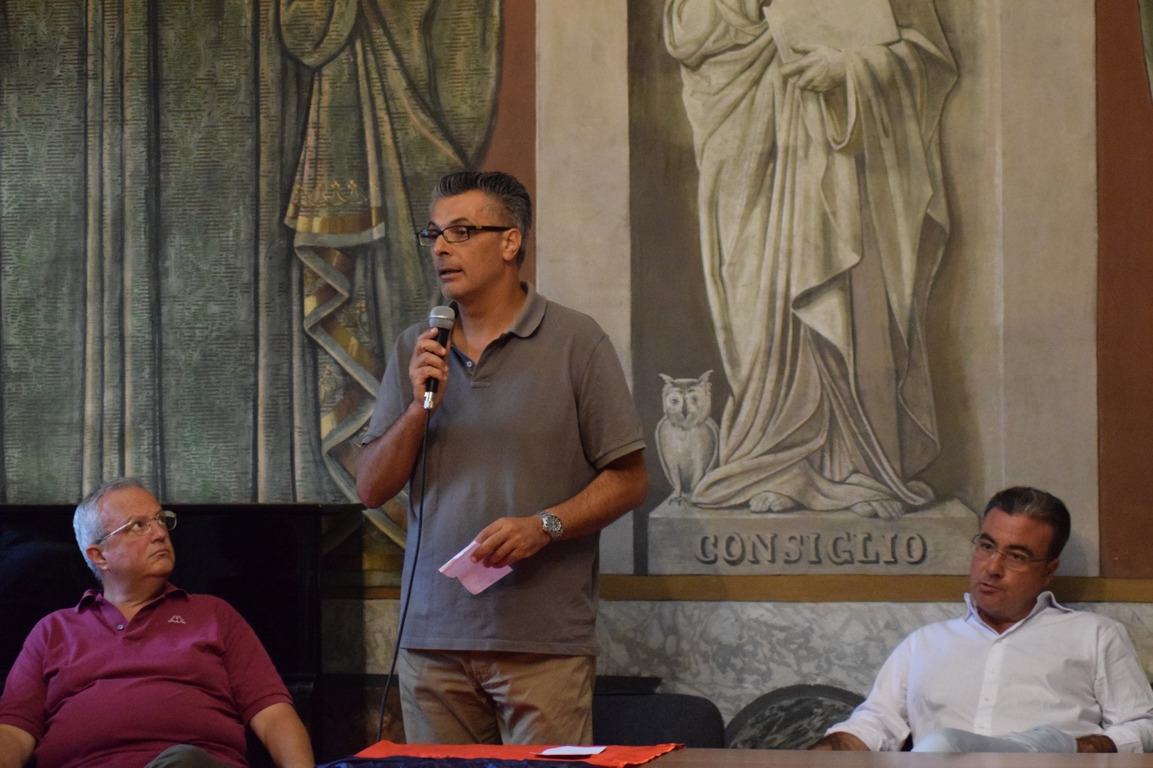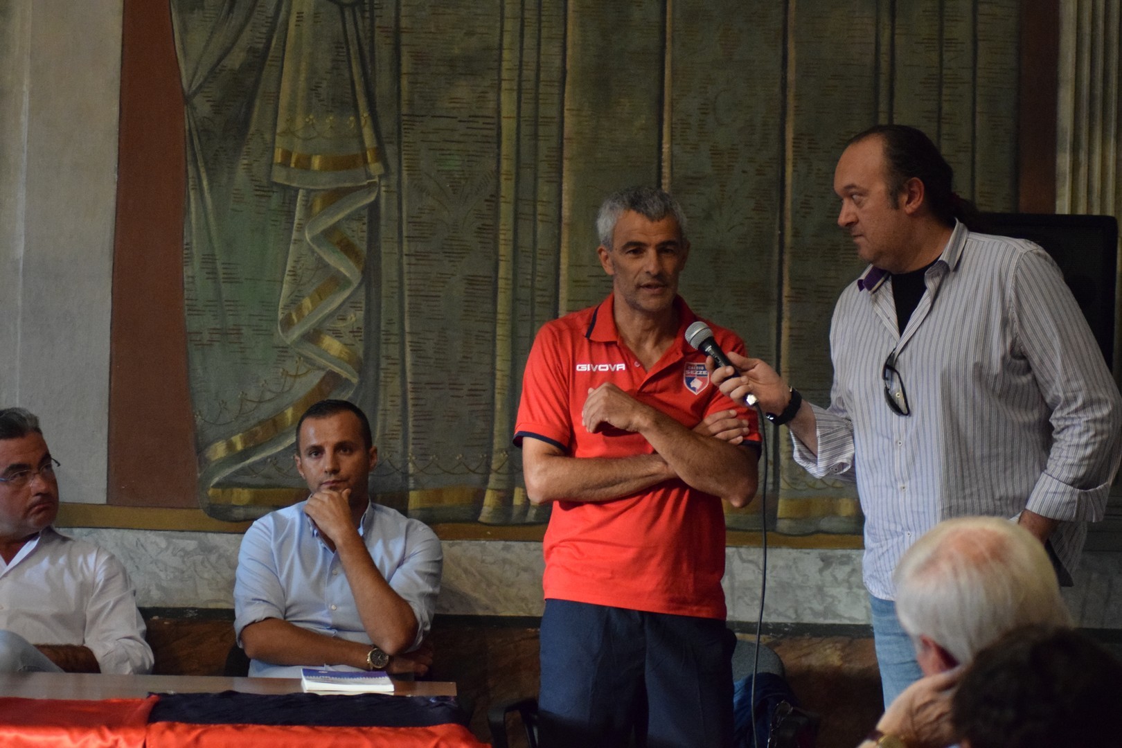 Si è svolta mercoledì pomeriggio all’interno della sala Ercole del Museo Archeologico Antiquarium Comunale di Sezze la presentazione istituzionale della prima squadra del Calcio Sezze, che da domenica sarà impegnata nel campionato Promozione 2016/2017. L’iniziativa, organizzata dalla società di concerto con il Comune, ha rappresentato l’occasione per l’amministrazione comunale di augurare le migliori fortune alla squadra, chiamata a rappresentare in tutta la Regione il nome della città. Presenti il sindaco Campoli, che ha fatto il suo personale incoraggiamento ai ragazzi e ha ringraziato la società per gli sforzi compiuti in questi anni, il presidente della commissione consiliare Sport, Carlo Ernesto Di Pastina, che ha parlato del valore sociale che una società sportiva ricopre nei confronti delle giovani generazioni, e l’assessore allo Sport del Comune di Sezze, Enzo Eramo, che ha tracciato un bilancio sugli investimenti ottenuti per l’ammodernamento e una messa in sicurezza maggiore dello stadio “Tasciotti” ed ha introdotto anche le novità che riguarderanno l’impianto di Fontanelle. Presenti anche diversi consiglieri comunali setini, che hanno raccolto l’invito della dirigenza ed hanno partecipato alla manifestazione. In rappresentanza la società hanno preso la parola il mister, Antonio Gaeta, che ha rinnovato la speranza di ritrovare il pubblico delle grandi occasioni nelle gare casalinghe, il direttore sportivo Fabrizio Di Emma, che ha parlato delle fasi del mercato e della costruzione della rosa, e il presidente, Marco Gaeta, che ha incentrato il suo intervento sulla necessità di proseguire un cammino iniziato due anni fa e che lo scorso anno ha portato la prima squadra ad un passo dall’Eccellenza, obiettivo che, senza nascondersi, si cercherà di conquistare in questa stagione ormai alle porte. Nel ringraziare l’amministrazione comunale tramite una maglia del Calcio Sezze consegnata dal capitano Giovanni Di Trapano al primo cittadino setino, la società ha anche confermato che l’intero incasso di domenica prossima (5 euro l’ingresso uomo/donna, bambini gratis), nella gara contro il Real Cassino, sarà devoluto alla famiglia Dell’Otto, colpita dalla tragedia del terremoto e scomparsa sotto le macerie della loro casa di Amatrice: “Come società – ha spiegato il presidente Marco Gaeta – avevamo deciso per l’ingresso gratuito per la prima giornata casalinga, così da favorire una maggiore partecipazione. Ma il dramma di Amatrice, con un’intera famiglia di Sezze scomparsa a causa del terremoto che ha investito quelle zone, ci ha fatto propendere per questa soluzione, che spero sarà apprezzata. Ci è sembrato doveroso, nelle nostre possibilità, metterci a disposizione per questa famiglia sfortunata e contribuire alle donazioni nei confronti di chi sta soffrendo”.