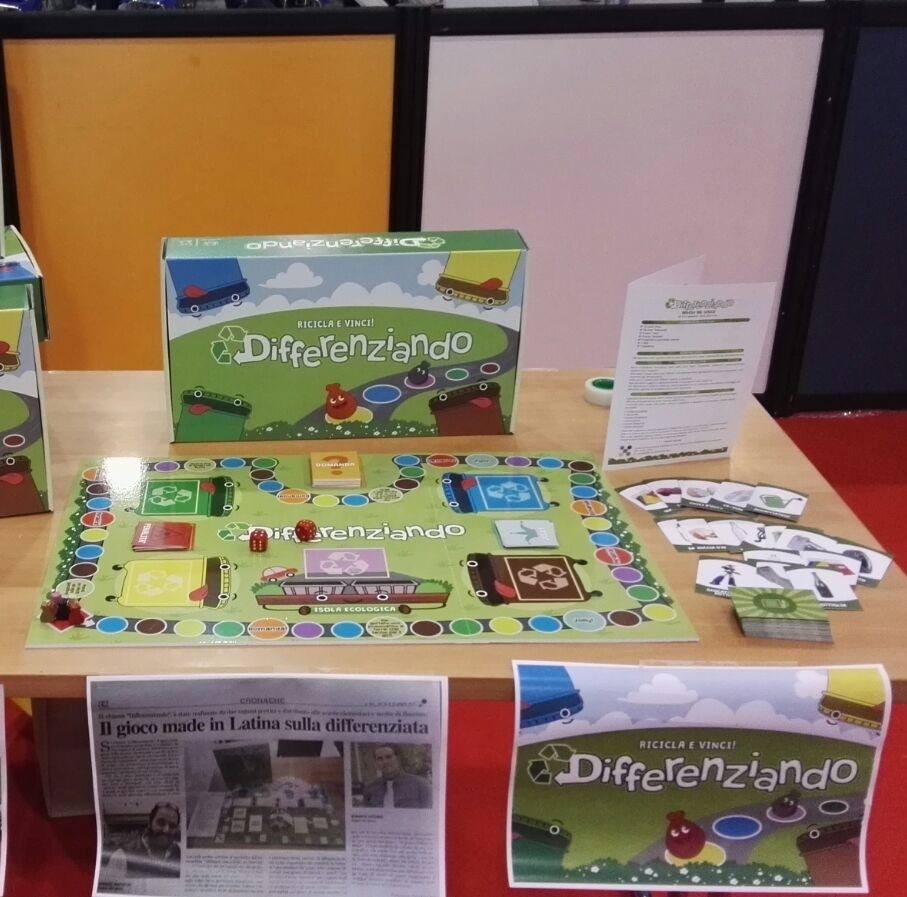 Il gioco pontino “Differenziando”, il gioco da tavolo sulla raccolta differenziata ha spopolato alla XX edizione del Romics, con più di 600 bambini che hanno giocato insieme ai genitori all’innovativo gioco educativo sulla raccolta differenziata. Entusiasti gli autori del gioco Manotta Manuel e Roberto Latorre“è stato bello vedere moltissimi bambini giocare appassionati su un tema così importante come la raccolta differenziata, il gioco sta aprendo nuove frontiere educative e la distribuzione attraverso diversi comuni delle Provincie di Latina e Roma” – Ringraziamo il nostro staff tutto al femminile che ci ha supportato durante il week-end della fiera.