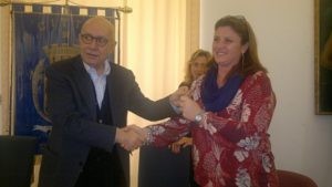 Mondoreale > Blog > Speciali > Formia, “Down at work”: firmata la concessione dell’immobile nella villa comunale > consegna_chiavi_alla_presidente