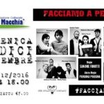 Domenica 11 dicembre alle ore 17:30 a dare ufficialmente inizio questo nuovo anno di teatro sarà l’associazione culturale la macchia in collaborazione con “The Splatter’s company”, una compagnia teatrale pontina giovane, esuberante e dinamica. L’associazione porta in scena lo spettacolo “facciamo a pezzi il teatro” con la regia di Simone Finotti e l’aiuto regia Pierluigi Polisena entrambi anche attori della commedia stessa punto e virgola un esilarante commedia con un finale che ci farà riflettere, un appuntamento da non perdere anche perché alle ore 17:30 ci sarà la presentazione ufficiale di un nuovo grande progetto del quale La Macchia è fiera promotrice. E vado un progetto che vanta collaborazioni con associazioni che operano a livello nazionale e che punta alla riqualificazione e al reinserimento sociale. Verrà inoltre presentato il calendario 2017 promosso dal progetto “EVADO”: 12 mesi di bellezza setina , 5 giovani fotografi freelance che con un click hanno immortalato l’immensa bellezza di Sezze dal loro personale punto di vista. Un calendario, insomma, bivalente: da una parte un occasione per i giovani fotografi di mostrare il loro talento, dall’altra far rivivere il nostro paese dal punto di vista di chi il paese lo vive e lo ama tutti i giorni.