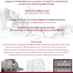Nell’ambito delle attività e delle mostre organizzate presso la Facoltà di Architettura dell’Università Sapienza di Roma per la settimana dedicata al “Progetto Ponte 2017” si è tenuto il 21 febbraio 2017 il seminario Ninfa, la “Pompei del medioevo”. L’aula 5 della sede di piazza Borghese è stata interamente dedicata agli studi che il DSDRA (Dipartimento di storia, disegno e restauro dell’architettura) sta svolgendo sugli edifici della città di Ninfa con una mostra di alcune tavole elaborate degli studenti e una serie di interventi da parte dei docenti dei corsi che si occupano di questi studi. La professoressa Maria Grazia Ercolino, coordinatrice del Corso di Laurea Magistrale in Architettura Restauro, ha introdotto il seminario descrivendo l’approccio interdisciplinare che si sta seguendo per lo studio della città. Gli arch. Laura Pennacchia e Giovanna Tarasco, che coordinano tale interdisciplinarità seguendo gli studenti nell’iter di studio attraverso le diverse materie, hanno presentato gli obiettivi del lavoro: la conoscenza dell’evoluzione edilizia ed urbanistica della città finalizzata alla valorizzazione degli aspetti storico-architettonici del sito e la creazione di una ‘carta del rischio’ che permetta la conoscenza completa dello stato di conservazione di tutti i manufatti e la programmazione degli interventi di restauro. Il dottor Pier Giacomo Sottoriva, Presidente della Fondazione Roffredo Caetani, proprietaria del sito di Ninfa, ha sottolineato l’importanza di questi obiettivi e rinnovato le sue intenzioni di utilizzare i risultati ottenuti a favore della conservazione e valorizzazione del sito, ringraziando docenti, studenti ed ex-studenti per il lavoro svolto. Dopo una presentazione dei lavori elaborati per alcune Tesi di Laurea, il professor Alessandro Viscogliosi ha moderato una tavola rotonda sul tema che ha visto gli interventi dell’arch. Stefano Borghini (architetto presso il MiBACT) e dei docenti Priscilla Paolini e Carlo Bianchini (Rilievo architettonico), Guglielmo Villa (Storia dell’urbanistica) e Daniela Esposito (Restauro architettonico). Ciascun docente ha evidenziato le problematiche riscontrate e i risultati ottenuti relativamente alla propria materia di riferimento e descritto le potenzialità di un lavoro svolto con il costante coordinamento di tutti gli ambiti disciplinari, che rende più completi e scientifici i risultati e più produttivo il Corso di Laurea.