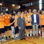 Giovedì 6 aprile, dopo una lunga cavalcata le compagini rappresentanti i più importanti Istituti Superiori della città di Latina, si sono incontrate per la sfida finale, alla presenza del Cav. Lucio Benacquista, del Sindaco di Latina Damiano Coletta, del Prefetto Pierluigi Faloni, della prima squadra nerazzurra al completo e degli oltre 1300 studenti sulle tribune del palazzetto. La prima edizione della manifestazione pensata e realizzata dal club nerazzurro è stata vinta dal Liceo Scientifico G. B. Grassi al termine di un match avvincente ed entusiasmante contro il liceo classico Dante Alighieri. Dà inizio alla giornata il Presidente Cav. Lucio Benacquista con un toccante discorso d’apertura, applaudito ed elogiato da tutti i presenti: «Benvenuti a tutti gli studenti, i professori, i dirigenti scolastici e amministrativi che hanno reso possibile questa meravigliosa iniziativa. Ringrazio il Sindaco, il Prefetto, il Comandante della Guardia di Finanza e il Coordinatore del Miur per averci onorato con la loro presenza in questa splendida giornata all’insegna dello sport. Desidero ringraziare tutti coloro che hanno contribuito alla realizzazione di questo bel progetto, a partire dai miei figli Sabrina e Massimiliano Benacquista, allo staff tecnico del settore giovanile della Latina Basket, a tutti i collaborati della Benacquista Assicurazioni che hanno partecipato attivamente all’organizzazione della manifestazione. Visto il grande successo riscosso da questa prima edizione del Torneo, siamo pronti a renderlo una tradizione per la città di Latina estendendolo il prossimo anno anche alle scuole medie e tra due anni a quelle elementari. Lo sport ci unisce e ci rende amici – ha continuato il Commendator Lucio Benacquista – io amo lo sport e lo vivo da tantissimi anni perché ritengo faccia emergere sentimenti di altruismo, fratellanza e solidarietà». A seguire c’è stato anche un breve intervento da parte del Sindaco Damiano Coletta: «Mi complimento con il Cav. Benacquista per aver pensato e realizzato questa manifestazione, quello che si fa nelle scuole rende lo sport più vivo e appassionante. Lo sport è un momento di incontro, la competizione è ciò che rende vivo lo sport, ma la lealtà è ciò che lo rende ancora più nobile.