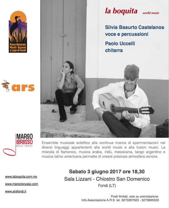 Locandina evento La Boquita – Fondi (Italy) Ultimo aggiornamento: 30 Maggio 2017 23:06 Lidano Lucidi Pubblicato 30 Maggio 2017 Condividi