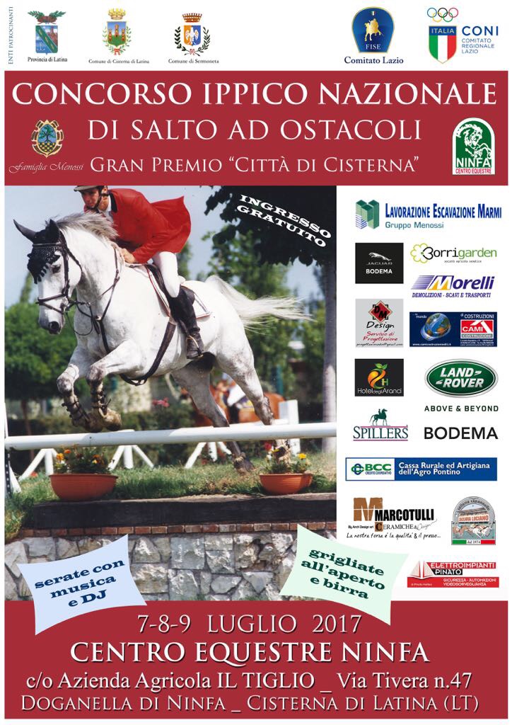 Si rinnova l’appuntamento con la grande equitazione a Cisterna. Questo weekend, presso il Centro Equestre Ninfa (azienda agricola “Il Tiglio”) si svolgeranno le gare del Gran Premio Città di Cisterna, concorso nazionale di salto ad ostacoli. Dopo il successo delle edizioni andate in scena la primavera scorsa, nell’incantevole struttura di via Tivera 47 torneranno ad affrontarsi circa 250 cavalli e cavalieri provenienti da ogni parte della Penisola. Promosso dal Centro Equestre Ninfa ASD della famiglia Menossi, dal MiPAAF (Ministero delle Politiche Agricole, alimentari e Forestali) e dalla F.I.S.E. (Federazione Italiana Sport Equestri), l’evento gode del patrocinio di Provincia di Latina e Comune di Cisterna. Le gare sono propedeutiche per le finali del circuito sportivo 2017 F.I.S.E. che si terranno nel corso della prossima edizione di Fiera Cavalli Verona. Oggi e domani cominceranno le gare dalla mattina fino alla prima serata, tutte ad ingresso gratuito per il pubblico. Dopo lo spettacolo dei cavalli, spazio ai concerti di musica dal vivo, dj set e grigliate all’aperto per un evento da vivere fino a tarda serata. “Siamo di nuovo pronti – dice Gabriele Menossi – ad accogliere nella nostra struttura un altro prestigioso evento di sport, natura, spettacolo ed intrattenimento, al quale invitiamo tutti a partecipare”.