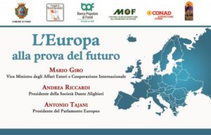 Il chiostro di San Domenico in Fondi ospiterà nuovamente il consueto appuntamento culturale estivo organizzato dal Comune di Fondi e dalla Comunità di Sant’Egidio, dal titolo “L’Europa alla prova del futuro”. Lo rende noto il Sindaco di Fondi Salvatore De Meo, annunciando lo svolgimento dell’incontro per mercoledì 23 agosto alle ore 20.30 con la partecipazione di Mario Giro, Vice Ministro degli Affari Esteri e Cooperazione Internazionale; Andrea Riccardi, Presidente della Società Dante Alighieri e fondatore della Comunità di Sant’Egidio; Antonio Tajani, Presidente del Parlamento Europeo. La manifestazione è organizzata dal Comune di Fondi e dalla Comunità di Sant’Egidio in collaborazione con MOF – Centro Agroalimentare all’Ingrosso, Banca Popolare di Fondi, Conad Superstore Fondi e con il patrocinio del Parco Naturale Regionale dei Monti Ausoni e Lago di Fondi. “L’incontro – afferma il Sindaco De Meo – rappresenterà occasione per affrontare con autorevoli relatori temi di grande attualità e rilevanza, tra cui fenomeni migratori e regole per l’accoglienza dei rifugiati, disuguaglianze economiche, cambiamenti climatici, Brexit, recessione, terrorismo, ma anche crescita sostenibile, rapporto tra istituzioni comunitarie e Stati membri. L’iniziativa si inserisce tra quelle che l’Amministrazione comunale sta portando avanti, soprattutto tra i giovani, affinché i cittadini siano sempre più consapevoli e partecipi nel dibattito sul futuro dell’Unione europea”.