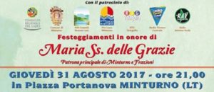 Riflettori accesi sulla tredicesima edizione di “Minturno Musica Estate”. La manifestazione è in programma questa sera alle ore 21, in piazza Porta Nova. Ospiti dell’attesa serata, che animerà la Festa Patronale della Madonna delle Grazie, saranno, tra gli altri, i Cugini di Campagna, Piero Mazzocchetti, Neja, Lucariello e Peppino Di Capri. L’orchestra sarà diretta dal maestro Mimmo Sessa. La direzione artistica della manifestazione è affidata al manager minturnese Pasquale Mammaro.