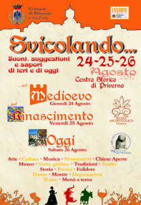 Svicolando è un evento patrocinato e finanziato dalla regione, nell’ambito del programma “L’estate della regione Lazio”, che si svolge in uno dei suoi Centri storici più belli e suggestivi, che ha voglia di essere riscoperto e vissuto con gioia ed emozione. Nei vicoli e nelle piazze, allestiti a festa, si esibiranno bravissimi artisti di ogni genere: attori, musicisti, ballerini, artisti di strada, poeti e tanti altri. Si potranno visitare tutte le chiese, i musei, i portoni e i palazzi storici anche con la guida di esperti, se prenotati.