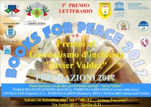 Sabato 16 settembre 2017 alle ore 17, nei locali dell’I.C. “Arturo Toscanini” di Aprilia in Via Amburgo 1, si terrà la Premiazione del concorso letterario “Books for Peace” e del “Premio Giornalismo d’inchiesta Javier Valdez”, organizzato con importanti associazioni internazionali: la FUNVIC (Fundacao Universitaria Vida Crista – Brasil – membro UNESCO), l’Associazione Nazionale Giudici di Pace, l’International Academie Diplomatique Pax et Salus (IADPES), l’ANASPOL (Associazione Nazionale Agenti Sottufficiali Polizie Locali), il SULPL (Sindacato Unitario Lavoratori Polizie Locali) e la Cambridge International Virtual University of Malta. Il ‘Books for Peace 2017’, con il Patrocinio del Comune di Aprilia, è stato pubblicato sui maggiori siti del settore. Nel corso dell’iniziativa saranno premiati 15 libri di autori provenienti da tutta Italia che vertono su argomenti sociali inerenti la pace e la convivenza civile e che in particolare puntano i riflettori su bullismo, razzismo, Identità di genere, interreligiosità. Saranno inoltre assegnati due premi speciali all’editoria e all’opera pittorica sull’immigrazione. Le buste con i nomi dei vincitori del “Books for Peace 2017” saranno aperte il 16 settembre durante la premiazione. Il Premio Giornalistico d’inchiesta “Javier Valdez” è dedicato invece al giornalista messicano che ha combattuto, con le sue inchieste stampa, i cartelli della droga e che, da questi, è stato recentemente assassinato. Il premio sarà consegnato a Paolo Di Giannantonio (Giornalista Rai, per anni volto del Tg1 e di Uno mattina per alcune edizioni, attualmente collabora con la trasmissione TV7-Rai1. A lui andrà il premio alla Carriera), Fiorenza Sarzanini (Corriere della Sera, per le varie inchieste condotte, in particolare quella sulla sanità), Cecilia Leo ( per alcuni servizi sull’immigrazione e sulla disabilità andati in onda a Tagadà su La7), Enzo Palladini (Mediaset-Sport, per la correttezza sportiva), Rita Cavallaro (oggi al Settimanale Giallo, premiata quale autrice del libro inchiesta “Oltre l’indizio segreti e verita’ nell’omicidio Bergamini”). Nell’occasione saranno consegnati anche i Premi Funvic ad esponenti del mondo cattolico, tra questi Fra Lucio Maria Zappatore, parroco di San Marino ai Monti, conosciuto come il parroco che fece parlare romanesco San Giovanni Paolo II (con la famosa frase “Damose da fa”), Fra Amanuel G. Hagos (Rettore del Pontificio collegio Etiopico), Mons. Don Angelo Magistrelli (Padre Generale e Rettore del Preseminario “S.Pio X”), Padre Thomas Woldeselassie, per gli studi teologici e il Teatro Helios, per le favole dei burattini e l’impegno per i bambini. Inoltre sarà consegnato il premio al famoso autore colombiano Alexander Lopi, con il libro “L’orma d’amor in Roma”. Hanno confermato la presenza il sindaco di Aprilia, Antonio Terra e gli assessori alla cultura Francesca Barbaliscia e ai servizi sociali Eva Torselli. Quest’anno si è scelta per la Premiazione una scuola di Aprilia, città che si trova all’estrema periferia metropolitana, proprio al fine di portare la cultura ovunque, fuori dalle torri d’avorio e dai salotti buoni, nello spirito del compianto Javier Valdez.