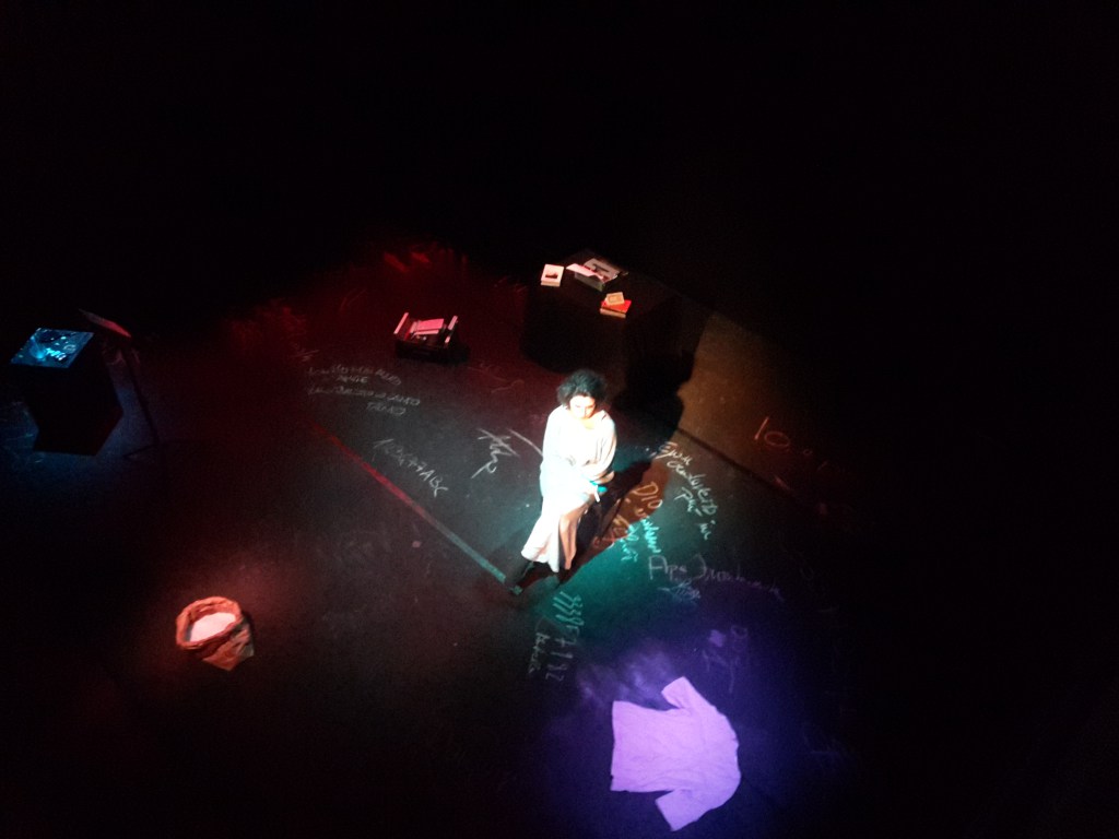 Il monologo è interpretato dall’attrice romana Giulia Santilli, che si muove dentro una scenografia essenziale a ritmo di musiche nostalgiche e penetranti. La regia è curata dall’attore e doppiatore Marco Guadagno.