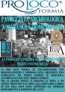 Con il forte caldo alle spalle, ripartono le passeggiate culturali della Pro Loco di Formia. Primo appuntamento domenica 17 settembre, con la passeggiata archeologica a Maranola, organizzata dalla Pro Loco di Formia in collaborazione con l’Associazione Maranola Nostra, l’Associazione RAM, e la Formiana Saxa presiedute da Claudio Filosa, Marco Tedesco e Luciano Simione. Il Cicerone, il dottor Marco Tedesco, accompagnerà i visitatori, partendo alle 10 da Piazza Antonio Ricca, a visitare il Borgo Storico di Maranola, l’antico “Muntano“, la cripta della Chiesa di San Luca dove sono contenuti gli affreschi raffiguranti la Madonna Del Latte e la Chiesa di Santa Maria. “Continua il nostro impegno come Pro Loco di promuovere le bellezze artistiche e naturalistiche del nostro territorio, – sottolinea Pierfrancesco Scipione, presidente della Pro Loco – partendo dalla volontà di condividere momenti speciali di spensieratezza con la nostra cittadinanza, alla scoperta degli angoli più suggestivi del comprensorio. Sono soddisfatto del lavoro svolto, giacchè, nonostante le ristrettezze economiche, ma armati di buona volontà e tanto entusiasmo, stiamo onorando l’impegno assunto di mettere al centro dei nostri sforzi le periferie, che reputo essere un valore aggiunto e una risorsa impareggiabile per continuare nell’obbiettivo di fare comunità e riscoprire le nostre tradizioni. Nella fattispecie Maranola rappresenta un borgo fantastico ricco di storia, in cui il tempo sembra essersi fermato , anche grazie all’opera concreta dei suoi abitanti che ne hanno custodito e preservato la sublime bellezza.” La partecipazione è gratuita. Per informazioni rivolgersi alla Pro Loco in Via Vitruvio, sotto il palazzo comunale, oppure consultare la pagina Facebook.