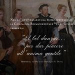 La Compagnia Rinascimentale “TRES LUSORES” festeggia il ventennale della sua prima esibizione. Con lo spettacolo “El bel danzar… per dar piacere all’anima gentile” – Un magico Viaggio nel Rinascimento tra passato e presente attraverso musiche, canti, danze di corte e sapori antichi, che sarà presentato a Cori, nella chiesa di Sant’Oliva, domenica 17 dicembre, alle ore 11, la Compagnia presenterà la Rievocazione Storica de “L’Arte del Ballare ò de i Balletti” del M° Fabritio Caroso da Sermoneta (1526-1605), uno spettacolo di danze e musiche del Rinascimento italiano, riprese e fedelmente ricostruite dai trattati “Il Ballarino” del 1581 e “Nobiltà di Dame” del 1600 e da quelli di altri maestri dell’epoca. Lo spettacolo sarà accompagnato da una conferenza sul maestro sermonetano tenuta dalla Prof.ssa Claudia Celi, docente di Storia della Danza presso l’Accademia Nazionale di Danza di Roma. Dal 1997, attraverso l’importante slancio dato da ragazze e ragazzi di diverse città del territorio, la Compagnia Rinascimentale ha elaborato nel tempo un particolarissimo spettacolo, unico nel suo genere, con l’intento di ricreare un’atmosfera di emozioni e piaceri antichi. In questo spettacolo, in continua evoluzione nel tempo, le danze di corte che vengono eseguite sono tratte dall’ampio repertorio di ricostruzioni coreografiche basate sull’interpretazione dei manuali di danza redatti dai maestri del Rinascimento, come appunto il maestro Fabritio Caroso da Sermoneta. Per le musiche e i canti la Compagnia si avvale della collaborazione di maestri professionisti appartenenti al Complesso Strumentale “Fanfarra Antiqua” come Carlo Vittori (clavicembalo, chiarina, percussioni), Carlo Marchionne (flauto), Mauro Salvatori (flauto, ciaramella, gaita), Francesca Candelini (flauto), Anna Maria Gentile (viola da gamba), Laura Fabriani (percussioni) e Roberta Polverini (soprano). La Compagnia in 20 anni di attività si è esibita in Italia e all’estero, dove ha rappresentato ufficialmente il Bel Paese e la città di Cori in importanti eventi, non ultimo la firma del Patto dello storico Gemellaggio tra Cori e Oświęcim, la città polacca nota con il nome di Auschwitz. In questo periodo di attività ha avuto anche l’occasione di collaborare con la Rai esibendosi durante la rubrica “Sì Viaggiare” del Tg2 e nella trasmissione di Rai2 “Mattina in Famiglia” condotta da Tiberio Timperi. L’evento è realizzato con il Patrocinio e il contributo della Regione Lazio e del Comune di Cori.