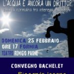 Domenica 25 febbraio alle ore 17:00 presso il Teatro “Remigio Paone”, in Via Sarinola a Formia, si terrà il XXXVI Convegno Bachelet organizzato dall’Associazione “Vittorio Bachelet” e dall’Azione Cattolica Diocesana, diventato ormai un appuntamento imprescindibile della nostra arcidiocesi. “L’ACQUA È ANCORA UN DIRITTO? Sete di normalità tra interessi e sprechi”, questo il tema del Convegno. Sarà l’occasione per riflettere su un problema che fino a qualche mese fa credevamo riguardasse solo altri continenti, altre nazioni, che, in altre parole, non ci toccasse direttamente. Infatti, come dice Papa Francesco nell’Enciclica “Laudato Si’, “la disponibilità di acqua è rimasta costante per lungo tempo, ma ora in molti luoghi la domanda supera l’offerta”. Invece per le vicende della scorsa estate ci siamo resi conto che il problema dell’acqua, del suo utilizzo, della sua gestione, riguarda anche l’Italia e tocca anche la nostra arcidiocesi. Relatore del convegno sarà il giornalista Riccardo Iacona, conduttore del programma “Presa Diretta” in onda in queste settimane il lunedì su RAI 3, profondo conoscitore della tematica a cui ha dedicato numerosi e importanti reportage.