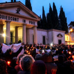 Oltre 5mila persone di tutte le età domenica pomeriggio, nonostante la pioggia, hanno preso parte alla fiaccolata organizzata in ricordo di Alessia (13 anni) e Martina (7 anni) Capasso, uccise dal padre Luigi lo scorso 28 febbraio. Così Cisterna ha voluto esprimere tutto il suo dolore e sgomento per un dramma che sconvolge profondamente l’intera comunità, simbolicamente rappresentata – al di là delle numerose presenze – dal commissario straordinario dott.ssa Monica Minolfi con indosso la fascia tricolore. Un corteo silenzioso e interminabile, in modo composto e silenzioso, da Piazza XIX Marzo, nel cuore della città, lungo Corso della Repubblica ha raggiunto il piazzale antistante il Cimitero. Dinanzi alle finestre illuminate della camera mortuaria dove all’interno si trovavano le due piccole bare bianche in attesa del funerale, sono stati esposti striscioni in onore di Alessia e Martina mentre il parroco don Patrizio ha invitato i presenti ad un minuto di raccoglimento e ad una preghiera. I palloncini bianchi e rosa, liberati hanno riempito il cielo mentre nell’aria hanno risuonato le note di “Sta passando novembre (è per te)” di Eros Ramazzotti.