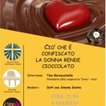 L’8 marzo alle ore 19:00 presso la Chiesa parrocchiale di Sant’Erasmo a Formia si svolgerà il convegno “Ciò che è confiscato la donna rende cioccolato”, con l’intervento della presidente della cooperativa “Davar” Tina Borzacchiello e moderato dalla giornalista Dott.ssa Simona Gionta. L’evento è stato organizzato dall’Azione Cattolica di Sant’Erasmo, dal presidio Libera Sud Pontino e la parrocchia di Sant’Erasmo, ed ha lo scopo di celebrare il genio femminile a servizio della comunità. La cooperativa sociale “Davar” nasce nel 2003 e ha preso vita grazie all’incontro di alcuni ragazzi dell’Azione Cattolica della Parrocchia San Nicola di Casal di Principe, la chiesa di Don Peppe Diana. Il loro obiettivo è da sempre quello di realizzare in maniera condivisa progetti di impresa a sfondo sociale. Uno dei progetti più significativi è senza dubbio il laboratorio di cioccolateria sociale. Davar Onlus nel 2011, con un bando pubblico promosso da Agrorinasce, ottiene lo spazio produttivo all’interno di un bene confiscato alla camorra destinato a “Casa delle Associazioni” necessario alla realizzazione del laboratorio di cioccolateria sociale. Il laboratorio vede impegnate al lavoro infatti persone diversamente abili con la passione per la cioccolata.