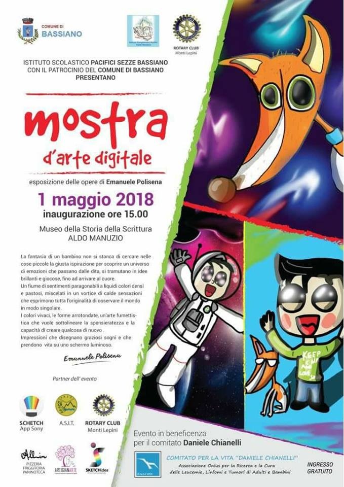 Ha solo 11 anni ed è probabilmente il più giovane artista locale ad esporre una personale di disegni. Emanuele Polisena, è nato e cresciuto a Sezze, e il prossimo 1 maggio proporrà la sua arte innovativa presso il Museo delle Scritture di Bassiano intitolato ad Aldo Manuzio, celebre umanista che innovò la comunicazione dell’epoca. La mostra, patrocinata dal Comune di Bassiano e realizzata in collaborazione con l’associazione A.S.I.T., il Rotary Club Monti Lepini e l’Istituto Pacifici Sezze-Bassiano avrà uno scopo benefico, il ricavato infatti verrà devoluto in beneficienza al “Comitato per la Vita Daniele Chianelli” di Perugia, ente che lavora per la lotta alle leucemie e linfomi e che, attraverso le donazioni ricevute fino ad ora, è riuscito a costruire un polo di ricerca adiacente all’ospedale Santa Maria della Misericordia di Perugia. “La fantasia di un bambino non si stanca di cercare nelle piccole cose la giusta ispirazione per scoprire un universo di emozioni che passano dalle dita, si tramutano in idee brillanti e giocose, fino ad arrivare al cuore. Un fiume di sentimenti paragonabili a liquidi colori densi che esprimono tutto l’originalità di osservare il mondo in modo singolare. I colori vivaci e le forme arrotondate, in arte fumettistica che vuole sottolineare la spensieratezza e la capacità di creare qualcosa di nuovo, impressioni che disegnano graziosi sogni e che prendono vita su di uno schermo luminoso”. In questo modo gli organizzatori descrivono il lavoro artistico e innovativo realizzato dal piccolo Emanuele.