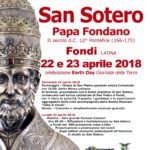 Con l’esposizione solenne del seicentesco busto argenteo, avvenuto sabato scorso nella chiesa di san Pietro a Fondi, inizia la preparazione in vista dei festeggiamenti in onore di San Sotero Papa a Fondi. Il programma dei festeggiamenti prevedono eventi nella giornata di domenica 22 e lunedì 23 aprile prossimi. Il Comune di Fondi, con il sindaco Salvatore De Meo e l’assessore alla Cultura e Pubblica Istruzione Beniamino Maschietto, unitamente alla locale Pro Loco Fondi presieduta da Gaetano Orticelli, organizzano per il terzo anno le manifestazioni in onore di San Sotero, unitamente alla Parrocchia di San Pietro apostolo, antica e insigne cattedrale, retta dal parroco Don Gianni Cardillo, e gli Istituti scolastici di Fondi. San Sotero è nato a Fondi ed è stato il dodicesimo Papa della Chiesa Cattolica.Le iniziative si prefiggono di ricordare e promuovere la figura dell’unico Pontefice della Chiesa Cattolica nato a Fondi, riprendendo l’antica tradizione e devozione verso San Sotero. Quindi, attraverso la sua figura mettere in luce il messaggio positivo della carità e della solidarietà; dell’armonia nel rispetto del creato. In sintonia con le celebrazioni in occasione dell’Earth Day Giornata Mondiale della Terra. Agli eventi hanno concesso il loro patrocinio: La Regione Lazio – La Provincia di Latina – la XXII Comunità Montana – Il Parco Regionale Monti Ausoni e Lago di Fondi.