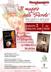 Si tinge di “giallo” il week end conclusivo del Maggio Sermonetano con “Il Grifone, la Scimmia e l’Usignolo” di Antonio Scarsella. Dopo l’escursione in canoa e percorsi a piedi per adulti e bambini alle 9:30 lungo il fiume Cavata, domani alle ore 18 presso il Palazzo Caetani, via Garibaldi sopra il Museo della Ceramica, si terrà “Il Maggio delle Parole”. Appuntamento con la letteratura e con due generi molto diversi di scrittura ma con un tema comune: Sermoneta. Si inizierà con “Il Grifone, la Scimmia e L’usignolo” di Antonio Scarsella, un appassionante giallo che solo la tenacia e l’arguzia del commissario francese Leveque, in trasferta a Sermoneta all’interno del Castello Caetani durante il Campus Internazionale di Musica, riusciranno a dipanare. Seguirà “La Forma della Malingonia”, un libro di poesie in vernacolo opera di Dante Ceccarini, poeta dialettale e in lingua italiana, nonché pediatra. L’incontro sarà animato dal giornalista Mauro Nasi e dalle letture di Amalia Avvisati oltre che dalla performance canora e musicale, nello stile del fado portoghese, di Mimmo Battista ed Angelo Cassoni su brani tratti dalle poesie di Ceccarini. Oltre agli autori dei due testi interverrà il sindaco di Sermoneta, Claudio Damiano. Concluderà la giornata, alle 21 presso il Giardino degli aranci, “Musartesia”, uno spettacolo rivolto ai rumori dell’anima.