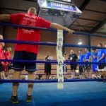 Tutti sul ring con le maglie celebrative dell’evento interregionale Lazio vs Campania. Due i colori, rosso e blu in base agli angoli di appartenenza. Un inizio all’insegna della sana rivalità condita dal rispetto dell’avversario, che a fine match torna amico. È nello spirito della noble arte, nello spirito con cui la Boxe Latina organizza le riunioni. La prima parte degli eventi organizzati in casa nel 2018, si è conclusa con una riunione tra scuole di pugilato a confronto accomunate dalla stessa identica passione per il ring. Un connubio sancito dalla premiazione al maestro Rosario Colucci della Boxe Leone Fazio Napoli, punto di riferimento per tutto il pugilato da campano. A consegnare la targa un altro maestro, Rocco Prezioso della Boxe Latina, per suggellare una proficua collaborazione che dura da tempo. Belle e intense le parole di Colucci sul profilo facebook: “Onorato e grato ai dirigenti e tecnici della ASD boxe Latina, per me una soddisfazione enorme ricevere un riconoscimento dopo tanti anni spesi al servizio della boxe. Ogni tanto c’è chi si ricorda di te e del tuo impegno profuso a favore della promozione sportiva del pugilato. Grazie ancora di cuore Boxe Latina!”. Nove gli incontri disputati, di cui sette hanno avuto come protagonisti pugili della Boxe Latina. Da registrare l’esordio con parità negli Elite di Giovanni Paolo Tafuri e l’esordio assoluto per Daniele Minnocci che ha vinto per squalifica dell’avversario. Per il resto in casa Boxe Latina due vittorie, due sconfitte ed un altro verdetto di parità. Due match Senior in apertura. Simone Calimera della Boxe Latina e Paolo Aruta della Polisportiva Fulgor hanno terminato in parità. Niko Bianchi dal suo rientro dopo un lungo stop continua a prendersi soddisfazione. L’81 kg ha portato dalla sua parte le tre riprese con Lorenzo Di Giovanni della Soul Boxe Mosella. Andrea Pumo si è dovuto fermare al termine della seconda ripresa per un problema al naso che ha indotto il medico ha far chiudere il match, andato ad Alessandro Karim Arminio della Fulgor. Daniele Minnocci e Giuseppe Lombardi hanno interpretato un match molto spigoloso, che si è concluso con la squalifica di Lombardi. Dopo la pausa gli incontri sono ripresi con l’affermazione dell’ivoriano Souare Moussa contro Alessandro Calvanese della Soul Boxe Mosella. Per gli Elite parità tra Giovanni Paolo Tafuri e Antonio Fusco della Boxe Duca Alberto Tixon, sconfitta di Matteo Conti con Giovanni Turboli della Soul Boxe Mosella. Sempre per gli Elite, Angelo Santilli della The Warrios ha bissato il successo di oltre un mese fa su Antonio Conforto della Boxe Priverno. Nell’unico confronto tra Junior e Youth, Matteo Costantini della Be Strong Academy ha battuto Michele Iodice della Boxe Leone Fazio.