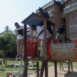 Altre parti della città (parchi, giardini e piazze) sono state riportate al loro decoro originario con la seconda giornata del progetto “Umuganda”, grazie alla collaborazione dei giardinieri del Comune di Latina, il gruppo di Protezione Civile dell’ANA di Latina (Associazione Nazionale Alpini), i dipendenti della cooperativa Karibu e i richiedenti asilo politico. Un momento di condivisione tra chi in città vive da sempre e chi è giunto da paesi lontani fuggendo da miseria, guerre e conflitti. In particolare i richiedenti asilo beneficiari dello Sprar sono tornati all’opera in diverse aree del capoluogo individuate dall’Assessorato all’Ambiente in accordo la cooperativa Karibu, promotrice dell’iniziativa. Come già avvenuto nel primo appuntamento, svoltosi il 27 giugno scorso, i rifugiati e i volontari si sono messi a disposizione tutta la mattina per attività che hanno dato un contributo prezioso alla cura del verde pubblico e dei beni comuni. Accanto a loro in questa occasione c’è stata anche la delegazione di Latina dell’Associazione Nazionale Alpini: il tutto è stato coordinato dalla Consigliera di Lbc Loretta Isotton, delegata alla qualità e vivibilità degli spazi cittadini, parchi e arredo urbano. Si è partiti dal parco di Via Ovidio con i ragazzi che hanno completato la tinteggiatura delle panchine e dei giochi per i bimbi e sistemato la tettoia presente nell’area. Nel parco di Via Varsavia sono state scartavetrate e ri-pitturate le 12 panchine presenti; aggiustati anche lo scivolo e le altalene. Un intervento con raccolta differenziata dei rifiuti ha interessato Piazzale D’Amico, accanto all’ex Consorzio Agrario, già oggetto di bonifica nella prima giornata di “Umuganda”. Un altro di taglio d’erba e arbusti è stato eseguito in un’area dell’Oasi Verde Susetta Guerrini danneggiata da un incendio. “Umuganda è un esempio di impegno condiviso tra istituzioni, cittadini, richiedenti asilo – afferma Loretta Isotton – un’iniziativa che ha l’obiettivo di favorire l’inclusione sociale e l’integrazione dei migranti attraverso lo svolgimento di opere di volontariato e di pubblica utilità con cui si punta anche alla formazione dei volontari perché acquisiscano capacità lavorative e autonomia. Anche l’occasione di oggi è stata un’opportunità di scambio con il tessuto associativo e i cittadini e per strutturare un lavoro di rete sul territorio”. Tranne che nel mese di agosto, le altre iniziative del progetto Umuganda si svolgeranno l’ultimo venerdì di ogni mese.