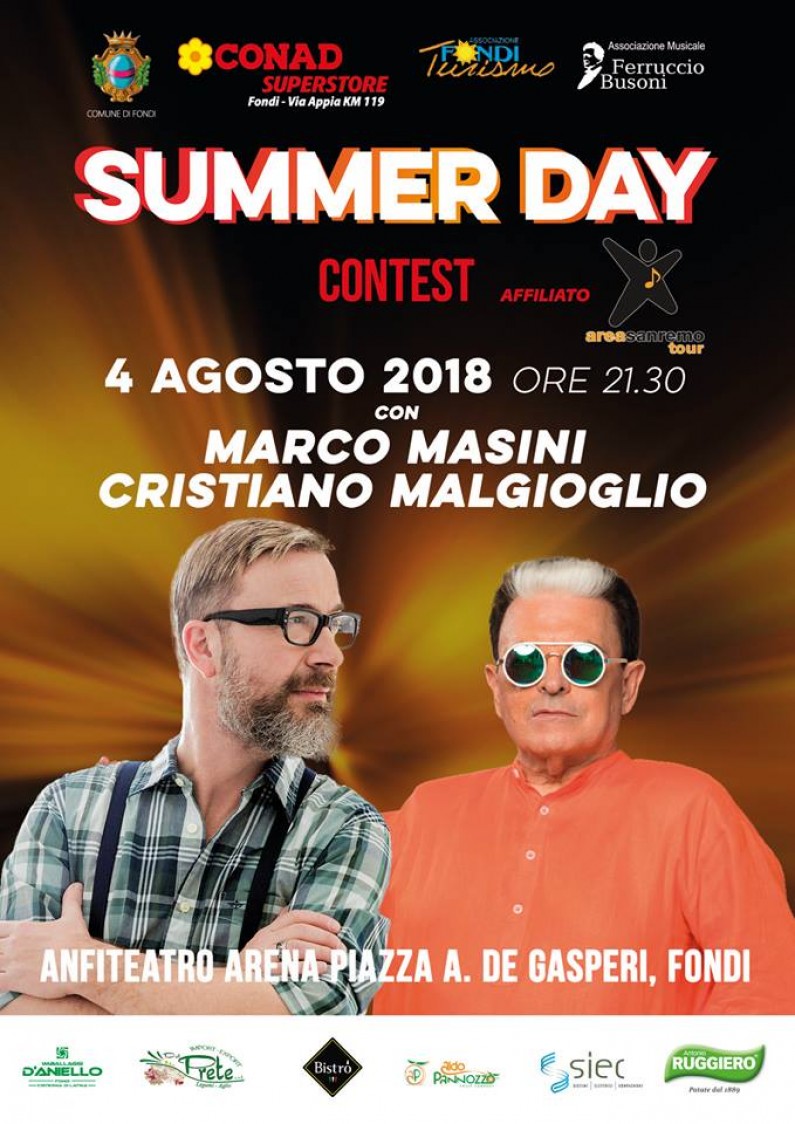 È tutto pronto all’Anfiteatro di Fondi per accogliere questa sera il Summer Day Contest, manifestazione affiliata a Area Sanremo Tour l’unico concorso che offre agli esordienti che si saranno classificati la chance di partecipare alla semifinale Nazionale di Area Sanremo 2018. Stasera i 15 finalisti si esibiranno live e avranno l’occasione concreta non solo di farsi sentire da professionisti della musica ma anche di salire sul palco dell’Ariston, fra le Giovani Promesse durante il Festival di Sanremo 2019. La giuria sarà di altissima qualità, scelta fra i migliori professionisti del settore, sarà presente Maurizio Caridi, Presidente della Sinfonica di Sanremo, Michele Torpedine, produttore de Il Volo, Danilo Ciotti, discografico, Adriano Pennino, direttore d’orchestra, e Nazzareno Nazziconi, organizzatore di Area Sanremo Tour Ospiti d’onore della serata saranno Marco Masini e Cristiano Malgioglio, due artisti che hanno dato lustro alla musica italiana negli ultimi decenni con anche Jlenia Cervello (vincitrice Area Sanremo Tour Video Clip passata edizione) e Selenia Stoppa (direttamente da The Voice of Italy 2018). Le selezioni di Area Sanremo Tour proseguiranno per tutta l’estate, il ricco calendario di appuntamenti è pubblicato sul sito www.areasanremotour.it, dove si possono reperire anche regolamento e modulo d’iscrizione. AREA SANREMO TOUR non è solo un concorso canoro, ma l’occasione per crescere artisticamente, professionalmente e prendere contatti con i professionisti del settore. Agli iscritti vengono offerti corsi di formazione, incontri con noti personaggi del mondo della musica, confronti con “vocal coach” e l’occasioni di avvicinare professionisti della musica. Area Sanremo Tour non è semplicemente e solamente una gara, ma è la tappa di un percorso artistico che rimarrà nel cuore dei partecipanti.”