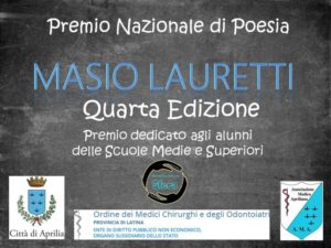 Sono stati resi noti i vincitori del Premio nazionale di Poesia “Masio Lauretti” che ogni anno premia ad Aprilia giovani poeti da tutta Italia. La cerimonia di premiazione è prevista per il 19 maggio presso la Sala consiliare del Comune e ci saranno delle novità che saranno rese note solo quel giorno. Intanto pubblichiamo la lista dei premiati e dei selezionati che vedranno come ogni anno i loro componimenti pubblicati in un’antologia.