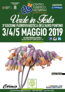 Torna per il terzo anno consecutivo la fiera florovivaistica pontina Verde in festa che si svolgerà da venerdì 03 a domenica 05 maggio nella Fattoria Prato di Coppola a Latina. La fiera, che gode del Patrocinio Morale della Regione, del Comune e della Confartigianato Imprese Latina, è nata per valorizzare le aziende produttrici del settore florovivaistico e, vedrà esporre anche le aziende artigianali che satellitano intorno al mondo dei fiori. Verde in festa è organizzata dal Centro Turistico Giovanile ‘Latina in itinere’ che da anni opera nel settore della valorizzazione del territorio dell’Agro Pontino, con particolare riguardo al patrimonio ambientale, storico, archeologico e culturale. Saranno più di 40 le aziende che esporranno nell’aera appositamente attrezzata immersa nel verde. Nella tre giorni molte le iniziative in calendario che comprenderanno laboratori, incontri con gli esperti, seminari e dimostrazioni tenuti da giardinieri professionisti, architetti del paesaggio, vivaisti, tecnici e docenti. Il calendario completo della manifestazione sarà reso noto durante la conferenza stampa di presentazione che si terrà Mercoledì 17 Aprile alle ore 17.45 presso il locale Le Bambole in Via Cesare Battisti n° 20, zona pub, a Latina. L’ingresso è libero.