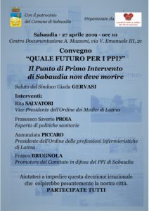 Sabato 27 aprile si terrà a Sabaudia, alle ore 10:00, presso la sala del Centro di Documentazione Angiolo Mazzoni (ex Ufficio Postale) il convegno “Quale futuro per i PPI? Il Punto di Primo Intervento di Sabaudia non deve morire”. Il Convegno è organizzato dal Comitato per la difesa del PPI di Sabaudia ed ha ottenuto il patrocinio del nostro Comune. L’obiettivo del Convegno è quello di fare il punto sotto l’aspetto legislativo, organizzativo e tecnico in merito alla decisione della Regione Lazio (DCA U00257/2017), per la graduale trasformazione, in coerenza con quanto disposto dal DM n. 70/2015, dei PPI in postazione “118” medicalizzata. In tale contesto di riconversione potranno essere previsti punti di offerta di assistenza primaria organizzati come presidi ambulatoriali territoriali di medicina generale, nell’ambito di quanto previsto dall’Accordo recepito con DCA 376/2014. Tale offerta dovrà essere garantita dall’attività dei medici di medicinagenerale e dei pediatri di libera scelta, attraverso le forme associative dei medici di assistenzaprimaria e di continuità assistenziale. In tale ambito potranno essere fornite anche prestazioniinfermieristiche.Sarà inoltre valutata, sulla base della programmazione aziendale, la possibilità direalizzare ulteriori Case della Salute presso i presidi che oggi ospitano un PPI. Sarano illustrate la proposta della ASL (di fatto una attuazione pedissequa della scelta regionale, nella quale però non viene fatto cenno alle Case della Salute), quella dell’Ordine dei medici di Latina, quella dell’Ordine delle professioni infermieristiche e quella del nostro Comitato che chiede che la struttura di via Conte Verde, che oggi ospita il poliambulatorio e il PPI sia trasformata in una Casa della Salute con annesso come modulo aggiuntivo un PPI(sempre aperto H24) possibilmente potenziato con personale qualificato che abbia frequentato corsi di emergenza. I lavori sanno aperti dal Sindaco di Sabaudia Giada Gervasi. Interverranno come relatori la dott.ssa Rita Salvatori, vice Presidente dell’Ordine dei medici di Latina, il dott. Francesco Saverio Proia, esperto in politiche sanitarie e già dirigente del Ministero della salute, la dott.ssa Annunziata Piccaro, Presidente dell’Ordine delle professioni infermieristiche di Latina e il dott. Franco Brugnola, promotore del Comitato per la difesa del PPI di Sabaudia. Sono stati invitati i Sindaci dei trentatré Comuni e i rappresentanti degli altri Comitati sorti spontaneamente negli altri sei Comuni che rischiano la perdita del PPI.