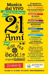 Latina, cinque giorni di festa per i 21 anni dell’Irish Pub Doolin