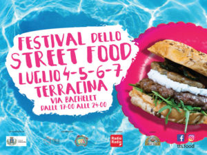 Festival dello Street Food dal 4 al 7 Luglio a Terracina. Via Bachelet sarà travolta dai colori, dal gusto e dal divertimento contagioso tanto da trasformare la splendida Terracina nella capitale del cibo da strada del Mediterraneo. La Typical Truck Street Food ha selezionato per la tappa di Terracina ben 26 Street Chef che all’interno dei loro coloratissimi ristoranti su ruote e roulotte vintage prepareranno il meglio del gourmet on the road. Gli Street Chef a bordo dei loro mezzi prepareranno in maniera rigorosamente espressa cibi da leccarsi i baffi per tutti i gusti. Un evento indimenticabile che gode del patrocinio dell’amministrazione comunale che si rivolge all’intera famiglia. Materie prime selezionate provenienti da tutto lo stivale verranno trasformate, a due passi dal mare, in piatti entusiasmanti. L’offerta gastronomica sotto le stelle che la Typical Truck Street Food ha preparato per Terracina è deliziosa: all’interno del villaggio si potranno degustare primi piatti della tradizione e stuzzicanti novità gastronomcihe. Secondi ricchi di gusto e contorni succulenti. Cibi per vegani e panini per i palati forti e coraggiosi. Non mancheranno portate internazionali e dolci di vario genere. Il Festival dello Street Food sarà caratterizzato anche da moltissimo sano divertimento: street band, giocoleria e spettacoli itineranti arricchiranno la quattro giorni di Terracina. Spazio anche per i più piccoli con laboratori, truccabimbi, palloncini e tanti giochi da fare in famiglia. Troveranno soddisfazione tutti i tipi di palati per un Menù da urlo: Bombette, pucce, focaccia e tipicità made in Puglia, Arrosticini, Cucina tipica vietnamita, Paella valenciana e sangria, Pasta mantecata in forma di parmigiano e fritti in vari gusti, Cono di pizza ripieno, Bombe, ciambelle calde e sfogliatelle, Cucina tipica siciliana, Panino con polpo arrosto, Cuzzetiello e pizza fritta, Cuoppo di pesce fritto, Birra artigianale cruda tedesca, Arrosticini e patate a spirale, Hamburger di Chianina, Hamburger e hotdog gourmet, Tiramisù espresso, Puccia pontina, Carciofo alla giudia, Panino con scottona sfilacciata, Cartoccio di salumi da passeggio, Panini gourmet con carne di bufala, verdure e burratina, Arancin in vari gusti ,Polpette fritte in vari gusti (anche vegan), Sfiziosità di pesce fritto, Olive e cremini ascolani, Polpette della nonna e gnocco fritto e tanto altro ancora.