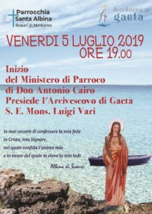 Venerdì 5 luglio alle ore 19.00 presso la parrocchia di Santa Albina Vergine e Martire a Scauri (Minturno), in Piazza Santa Albina 1, l’arcivescovo di Gaeta Luigi Vari presiederà la messa di inizio del ministero pastorale del nuovo parroco don Antonio Cairo. Don Cairo è nato nel 1964 ed è prete dal 1990. Dopo gli studi nel seminario di Anagni, ha conseguito la licenza in teologia presso il Teresianum di Roma. Tra gli incarichi pastorali è stato cerimoniere diocesano, direttore dell’ufficio liturgico e dell’ufficio catechistico diocesano, assistente dell’Agesci e dei Cursillos, delegato diocesano per il diaconato permanente. È stato delegato regionale per la liturgia e membro della consulta nazionale per la pastorale liturgica. Don Cairo è stato parroco della parrocchia ‘Risurrezione di Nostro Signore Gesù Cristo’ a Gianola (Formia) dal 1991 al 2008 e della parrocchia ‘Santuario San Nilo Abate’ (Gaeta) dal 2008 al 2019. È stato anche amministratore delle parrocchie di ‘Santo Stefano Protomartire’ e di ‘San Paolo Apostolo’ a Gaeta. Attualmente è direttore dell’ufficio diocesano per l’ecumenismo e il dialogo interreligioso.