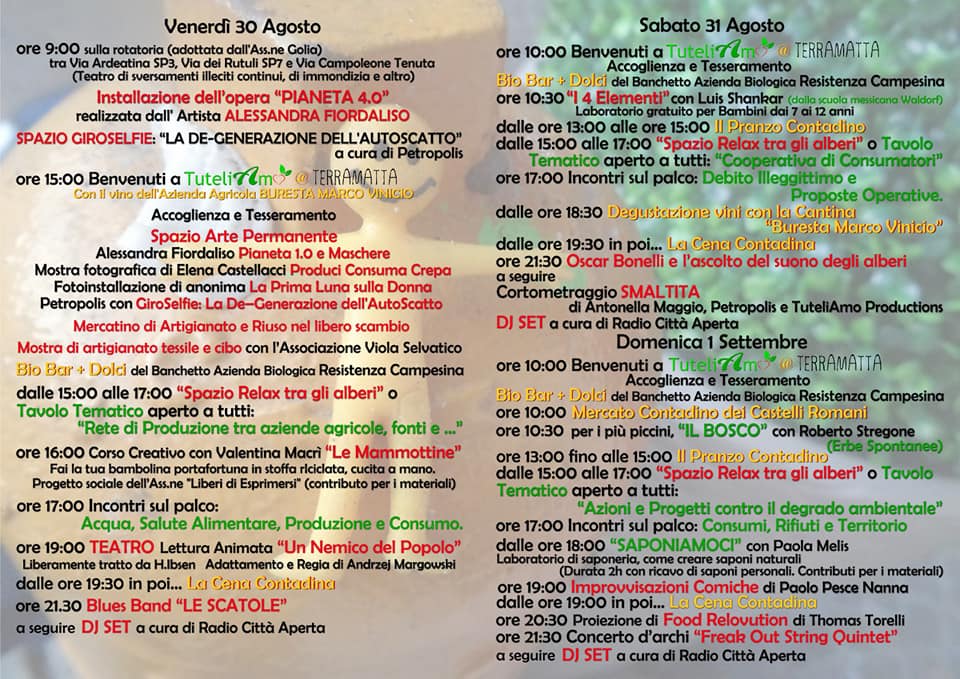 Ne parliamo a TerraMatta durante i tre giorni di TuteliAmo il 30, 31 agosto e il 1 settembre prossimi.