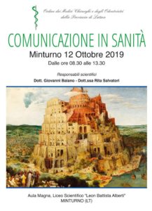 Tutto pronto per il convegno “La Comunicazione in Sanità”, che si terrà sabato 12 ottobre dalle ore 8.30 alle ore 13.30 presso l’aula magna del Liceo Scientifico “Leon Battista Alberti” di Minturno, organizzato dall’Ordine dei Medici Chirurghi e degli Odontoiatri della provincia di Latina. Obiettivo del convegno, fare il punto sulle varie forme di comunicazione che coinvolgono medici e cittadini attraverso i giornalisti. Molte le facce della comunicazione a cominciare da quella fra professionisti, come comunicano i medici fra loro e soprattutto come comunicano con il paziente o con i familiari. In esame anche i media e l’informazione medica, in cronaca sulla carta stampata e nelle rubriche radiofoniche e televisive. Ma anche il ruolo della comunicazione istituzionale nello scacchiere della tutela della salute pubblica e il valore della comunicazione sanitaria nel territorio, non tralasciando l’importanza della verifica delle fonti. Fra i relatori del convegno: Sandro Bartolomeo, medico chirurgo e specialista in neuropsichiatria infantile; Mirella Taranto, addetta stampa dell’Istituto Superiore di Sanità; Giuseppe Tipaldo, sociologo della comunicazione, Domenica Taruscio, direttore del “Centro Nazionale Malattie Rare”; Pier David Malloni, responsabile comunicazione del “Centro Nazionale Sangue” e collaboratore “Ansa Salute”; Licia Pastore, addetto stampa Asl Lt; Giovanni Del Giaccio, giornalista della testata “Il Messaggero” ed esperto in problemi sanitari; Roberta Sottoriva, giornalista direttore responsabile della testata giornalistica Lunanotizie.it. Responsabili scientifici del progetto la dott.ssa Rita Salvatori e il dott. Giovanni Baiano che apriranno i lavori presentando ed inaugurando il corso “Liceo a Curvatura Biomedica” per l’istituto “Leon Battista Alberti”. Modera l’incontro Dina Tomezzoli, addetto stampa dell’Ordine dei Medici di Latina.