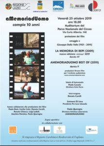Oggi, presso l’Auditorium del Parco Nazionale del Circeo a Sabaudia, si terrà l’appuntamento dedicato al decennale del progetto ‘A memoria d’uomo’. L’iniziativa promossa dalla casa di produzione Dream Film, in collaborazione con l’Associazione Pro Loco Sabaudia che ha sposato con convinzione l’idea di una banca del tempo, della memoria, attraverso l’audiovisivo, gode dei patrocini della Regione Lazio, del Comune di Sabaudia, del Parco Nazionale del Circeo e del sostegno del Reparto Carabinieri Biodiversità di Fogliano. Il laboratorio AMEMORIAD’UOMO nasce su iniziativa di Paolo Quaregna e Donata Carelli con la collaborazione di Cecilia Calvi e Rean Mazzone, per la realizzazione e la raccolta di una galleria di ritratti di gente tanto comune quanto straordinaria e per lo sviluppo creativo dell’attività didattica. Quando muore un anziano, una biblioteca brucia dice un proverbio africano e AMEMORIAD’UOMO ha cercato in questi anni di preservare l’esperienza e la saggezza di tante vite e altrettanti personaggi grazie all’accessibilità sempre maggiore della tecnologia digitale e della rete internet che hanno consentito una vera evoluzione nel settore della produzione, della raccolta e della conservazione dei documenti scritti e audiovisivi. In questi anni si sono alternati alla produzione dei film numerosi professionisti del settore cinema, non solo del territorio pontino, come Paolo Boni, Cecilia Calvi, Donata Carelli, Mauro Cassandra, Renato Chiocca, Luigi Lodoli, Giustino Pennino, Paolo Quaregna. Giuseppe Dalla Valle, a tutti noto come Bepi, è stato tra i primi ad essere intervistato e a narrare con incredibile capacità evocativa gli anni difficili della bonifica e della guerra. E proprio a Giuseppe Della Valle (1921-2019), scomparso recentemente, sarà dedicata la prima proiezione: una nuova edizione remixed del film ‘La memoria di Bepi’, girato nel 2009. Seguirà la visione del montaggio ‘AMEMORIADUOMO BEST OF (2019)’, un’antologia, condensata in nove minuti, dell’esperienza legata al Laboratorio che ripercorre i volti e le storie protagonisti in questi dieci anni, raccolti nell’Archivio AMEMORIADUOMO (consultabili sul sito www.amemoriaduomo.com e sulla pagina Facebook amemoriaduomo). La serata, dopo i saluti di benvenuto del direttore dell’Ente Parco Paolo Cassola, verrà introdotta dalla sceneggiatrice Donata Carelli, dal presidente della Pro Loco Sabaudia Gennaro di Leva e da Paolo Quaregna, regista e direttore artistico del laboratorio AMEMORIAD’UOMO. L’appuntamento, che vede anche la collaborazione della Roma Lazio Film Commission, della cooperativa Ninfea, della Fisar e del Bar Italia si concluderà con un aperitivo.