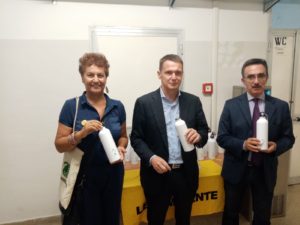 L’ITS A. Bianchini di Terracina diventa la prima Plastic Free School della Provincia di Latina e una delle prime nella Regione Lazio, grazie alla distribuzione di funzionali borracce in acciaio inox a doppio logo Legambiente Terracina-Acqualatina SpA, e alla consegna da parte dell’Istituto stesso di tessere nominative per l’attivazione di eleganti dispensatori di acqua pubblica filtrata predisposti dall’Istituto con il supporto di WaterStore Acqua alla Spina di Alessandro Sacchetti. La cerimonia di consegna ha avuto luogo il 14 ottobre presso l’Aula Magna dell’ITS A. Bianchini di Terracina, alla presenza del Vicepresidente della Provincia di Latina Vincenzo Carnevale, del Sindaco di Terracina Roberta Tintari, del Dirigente Scolastico Maurizio Trani, dell’Amministratore Delegato di Acqualatina SpA Marco Lombardi, del Consigliere di Amministrazione di Acqualatina SpA Alessandro Cerilli e del Vicepresidente di Legambiente Terracina “Pisco Montano” Gabriele Subiaco.