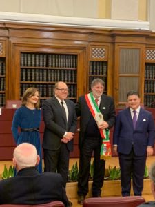 Si è svolto giovedì 16 gennaio nella prestigiosa Sala Koch di Palazzo Madama, sede del Senato della Repubblica Italiana, la cerimonia ufficiale per la consegna del Premio 100 Ambasciatori Nazionali. Organizzata dall’Associazione LIBER, presieduta da Verdiana Dell’Anna, in collaborazione con la casa editrice RDE, 100 Ambasciatori Nazionali è dedicato a Comuni, Aziende ed enti virtuosi, impegnati in ambiti rappresentativi per ogni regione italiana, quali agroalimentare, turismo, arte e cultura, sport e spettacolo, enogastronomia, moda, manifattura, innovazione, grande distribuzione, istituti di credito, abitare, cantieri navali, metalmeccanica, automotive, salute e benessere, tutela dell’ambiente, rispetto della legalità; enti locali e imprese in prima linea che portano in Italia e all’estero la conoscenza del luogo d’origine e del suo stile iconico, industrie che investono sull’etica, sulla salute e la formazione dei dipendenti, nonché aziende ed enti ambasciatori di un’Italia che sa difendere le proprie radici e valorizzare l’eccellenza, con lo sguardo sempre rivolto al progresso. Il Comune di Bassiano insignito di tale onorificenza, dopo aver conseguito nel 2017 il titolo di “100 mete d’Italia” è stato l’unico rappresentante della Provincia e tra gli unici quattro della Regione Lazio ad averla conseguita. “Sono onorato di rappresentare la nostra comunità insignita tra le migliori 100 eccellenze italiane per la capacità di promuovere e rappresentare l’Italia ovunque è ormai riconosciuto Ufficialmente come Ambasciatore per l’Italia, un percorso importante il nostro Comune sta portando avanti da sempre, Bassiano e la comunità bassianese orgogliosamente riconosciuti tra le eccellenze italiane” interviene il Sindaco Domenico Guidi che prosegue ” lo stesso Carlo Verdone, presidente del Comitato, nel consegnarci il premio ha riconosciuto il valore che un piccolo comune può apportare nella promozione della cultura in Italia e dell’Italia, sottolineando l’imponenza di Bassiano nell’essere patria del celebre umanista Aldo Manuzio” a cui fa seguito il Presidente del Consiglio Costantino Cacciotti “il turismo, la gastronomia, la storia e le tradizioni.. sono sempre state riconosciute come pilastri portanti del nostro paese, ora ancor di più affiancate dalle strategie amministrative poste in essere riconosciute a livello nazionale come best practice”. A condurre la serata, la giornalista Alda d’Eusanio che ha intervistato i membri del Comitato d’Onore, composto da personalità e autorevoli rappresentanti di importanti Enti e istituzioni nazionali. In sala la platea composta da 100 protagonisti e illustri ospiti tra le autorità.