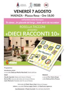 La rassegna “Tre donne…tre piazzette del borgo…tante storie da raccontare” aprirà il tris di donne venerdì 7 agosto, alle ore 18, in Piazza Rosa, con Rosella Tacconi e il suo ultimo libro “Dieci Racconti 10”, edito da Sintagma.