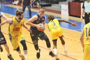 Per la Benacquista Assicurazioni Latina Basket è trascorsa un’ulteriore settimana dall’avvio di questa stagione così diversa dalle precedenti in termini di tempi e modalità di svolgimento, ma non si concluderà con la seconda partita di Supercoppa sul campo della Cestistica San Severo, per via del posticipo della stessa a giovedì 29 ottobre alle ore 19:00. I nerazzurri sabato 24 ottobre alle ore 20:30 affronteranno a domicilio il Napoli Basket per mandare in scena quella che in origine doveva essere la terza e ultima gara della fase di qualificazione della Supercoppa. Durante le doppie sedute giornaliere si sono intensificati anche gli allenamenti di Luca Bisconti, che, precedentemente, era rimasto fermo per infortunio.Il primo match ufficiale di questa stagione, disputato la scorsa domenica al PalaBianchini, per gli uomini guidati da coach Franco Gramenzi è stato intenso e positivo sotto vari aspetti. La vittoria conquistata dopo un tempo supplementare e una gara giocata sul filo dell’equilibrio al cospetto di uno squadrone come Scafati, è stata una soddisfazione sia dal punto di vista del gruppo, che ha dato prova di coesione, determinazione e grandissimo desiderio di riaccendere i riflettori sul basket giocato, come accadeva prima che il Covid19 li attirasse inevitabilmente su di sé, sia dal punto di vista personale per un giocatore nerazzurro in particolare, che non disputava una gara ufficiale da 2 lunghi anni: Gabriele Benetti, ala classe 1995, arrivato a Latina pochi giorni prima che il lockdown fermasse il campionato e che, quindi, non era riuscito a fare il suo esordio con la Benacquista nella stagione precedente.