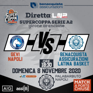 La Benacquista Assicurazioni Latina Basket, in accordo con la Gevi Napoli Basket, comunica ufficialmente lo spostamento della gara di Supercoppa di A2 inizialmente programmata per sabato 24 ottobre 2020 alle ore 20.30 presso il Palabarbuto, a domenica 8 novembre 2020 alle ore 18.30, sempre presso il Palabarbuto.