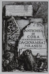 La location: la Chiesa di Sant’Oliva di Cori, che rappresenta la testimonianza tangibile della rielaborazione originale e creativa di strutture architettoniche antiche. I rami originali delle Antichità di Cora, incisi da Giovambattista Piranesi, concessi dall’Istituto Centrale per la Grafica ed esposti presso il Museo della Città e del Territorio di Cori con un allestimento curato dal Prof. Domenico Palombi.