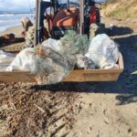 Ottavo giorno di pulizie straordinarie sul litorale di Fondi dopo che le recenti mareggiate hanno inondato la spiaggia di rifiuti.