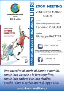 Venerdì 12 Marzo, alle ore 21, in diretta Facebook sulla pagina ufficiale, il Panathlon Club di Latina presenta “Vittorie imperfette” di Federico Vergari.