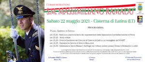 Oggi, 22 maggio, la famiglia Ramadù in collaborazione con la sezione ANGET di Cisterna e l’Amministrazione comunale, celebreranno la commemorazione con una cerimonia pubblica semplice e nell’osservanza delle disposizioni anticovid. Il programma prevede l’appuntamento alle ore 15 in Piazza Amedeo di Savoia con il successivo arrivo e posizionamento dei rappresentanti delle associazioni combattentistiche, d’Arma e di volontariato, quindi delle autorità civili e militari.