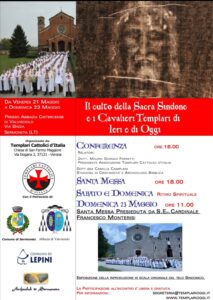 Il Priore Padre Andrea Rossi con l’Associazione Templari Cattolici d’Italia hanno organizzato un programma culturale molto denso. Infatti, si inizierà già dal venerdì 21 maggio alle ore 16:00 con l’interessante Convegno sul Culto della Sacra Sindone e i Cavalieri Templari di ieri e di oggi. I relatori del Convegno, che ha avuto il patrocinio del Comune di Sermoneta, saranno il dott. Mauro Giorgio Ferretti e la dott.ssa Camilla Camplani, studiosa di Cristianità e Archeologia Biblica. Per l’occasione verrà nuovamente esposta la copia conforme del telo sindonico, esposto in abbazia anche nel periodo pasquale.