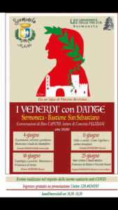 Si inizia venerdì 4 giugno con “Il pentimento, salvezza e perdizione: Buonconte e Guido da Montefeltro”, con il commento musicale di Daniele Santamaria – violoncello. A seguire, l’11 giugno “Odio e carità: conte Ugolino e anime trionfanti” con il commento musicale di Claudio Paradiso – flauto. Venerdì 18 giugno sarà la volta di “Cupidigia e povertà: Simoniaci e Francesco d’Assisi”, con il flauto di Mario Albergi che accompagnerà le letture. Infine, venerdì 25 giugno “Amor cortese e amore misto: Francesca da Rimini e Piccarda Donati” con la chitarra e voce solista di Angela Giugliano. L’evento si terrà nel rispetto delle norme anti Covid e sarà a ingresso gratuito su prenotazione al numero 328/4654391.