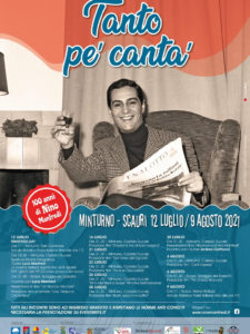 In occasione del centenario della nascita, il Comune di Minturno (LT) rende omaggio al grande Nino Manfredi, cittadino onorario dal 1998. L’attore e regista ciociaro, nato il 22 marzo 1921 a Castro dei Volsci, era legatissimo a Scauri, località turistica del Sud pontino, possedendo una villa sul Monte d’Oro, affacciata sulla splendida Spiaggia dei Sassolini, dove fin dal 1961 veniva a passare le vacanze estive o anche per soggiorni nel periodo invernale nelle pause tra un film e l’altro. L’Amministrazione comunale ha programmato una retrospettiva, dal titolo “Tanto pe’ canta’ – 100 anni di Nino Manfredi”, dal 12 Luglio al 9 Agosto 2021, organizzata in collaborazione con l’Associazione Culturale “Il Sogno di Ulisse”, aperta e chiusa da due annulli postali. La mostra ha ricevuto il riconoscimento dalla Direzione Generale Cinema del Ministero della Cultura quale evento di alto valore culturale ed è patrocinata dalla Regione Lazio e dalla Provincia di Latina.