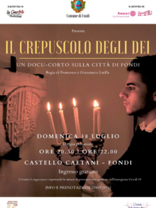 “Il progetto – ricostruisce Gianmarco Latilla – nasce dal Museo Civico archeologico di Fondi, in collaborazione con il Comune di Fondi, la Regione Lazio e il patrocinio del ministero dei Beni Culturali, allo scopo di narrare (e mostrare) quella che un tempo, alla corte della principessa Giulia Gonzaga, venne definita la “piccola Atene””. Girato nel febbraio 2020, “Il crepuscolo degli dei” è una chiara dimostrazione d’affetto dei due fratelli alla loro terra, un atto d’amore verso le bellezze che abitano l’antico borgo, tra chiese, terme romane e palazzi reali. Faro della narrazione la sontuosità e l’imponenza del Castello.